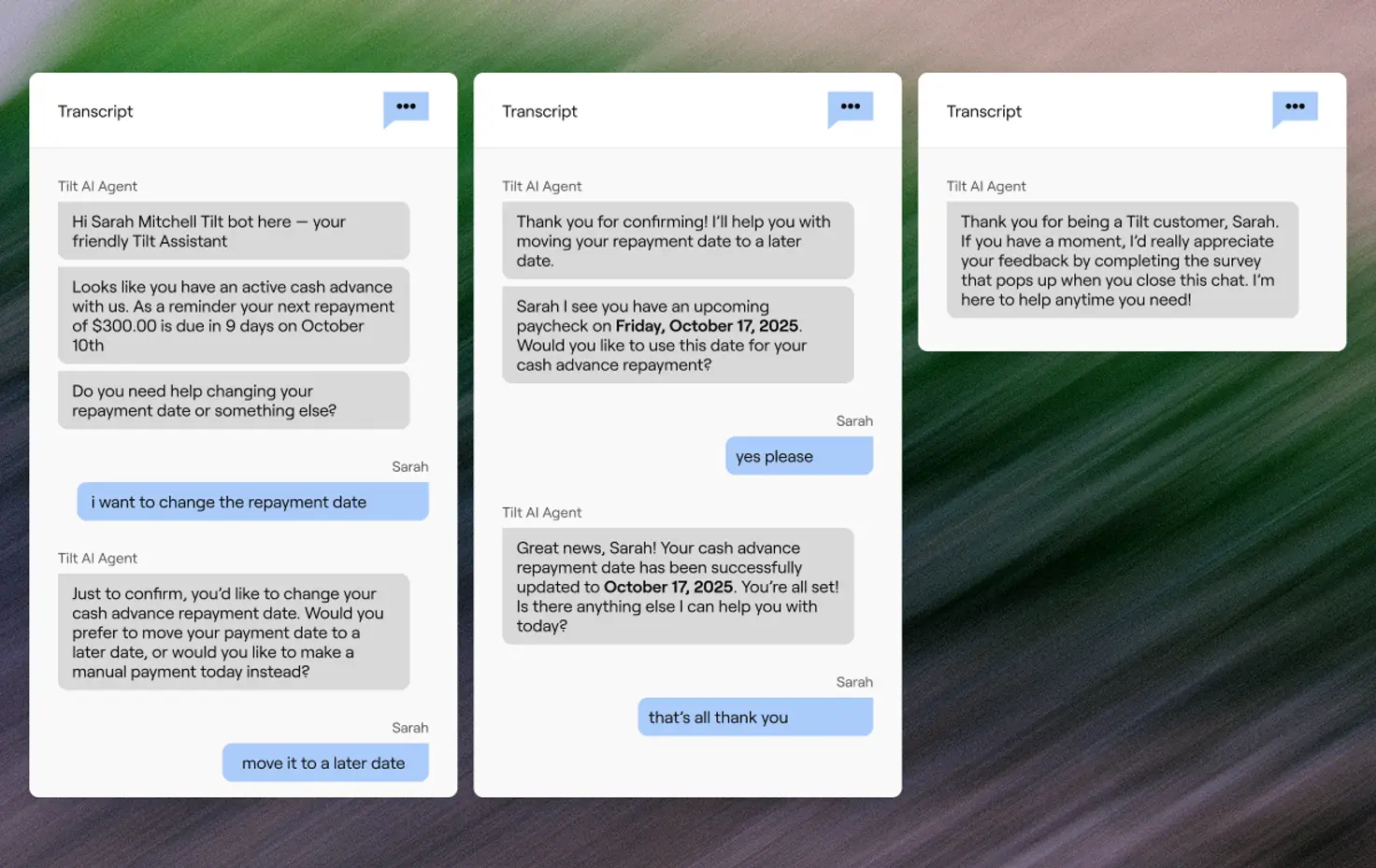 With the rebrand, Tilt is looking to create a warmer, more welcoming feel in their customer service. “Our tone has been very neutral,” Diaz says, “and we want to be more approachable, intelligent, and soulful in the way we respond.” His team is currently working on training the AI agent to adopt this.
