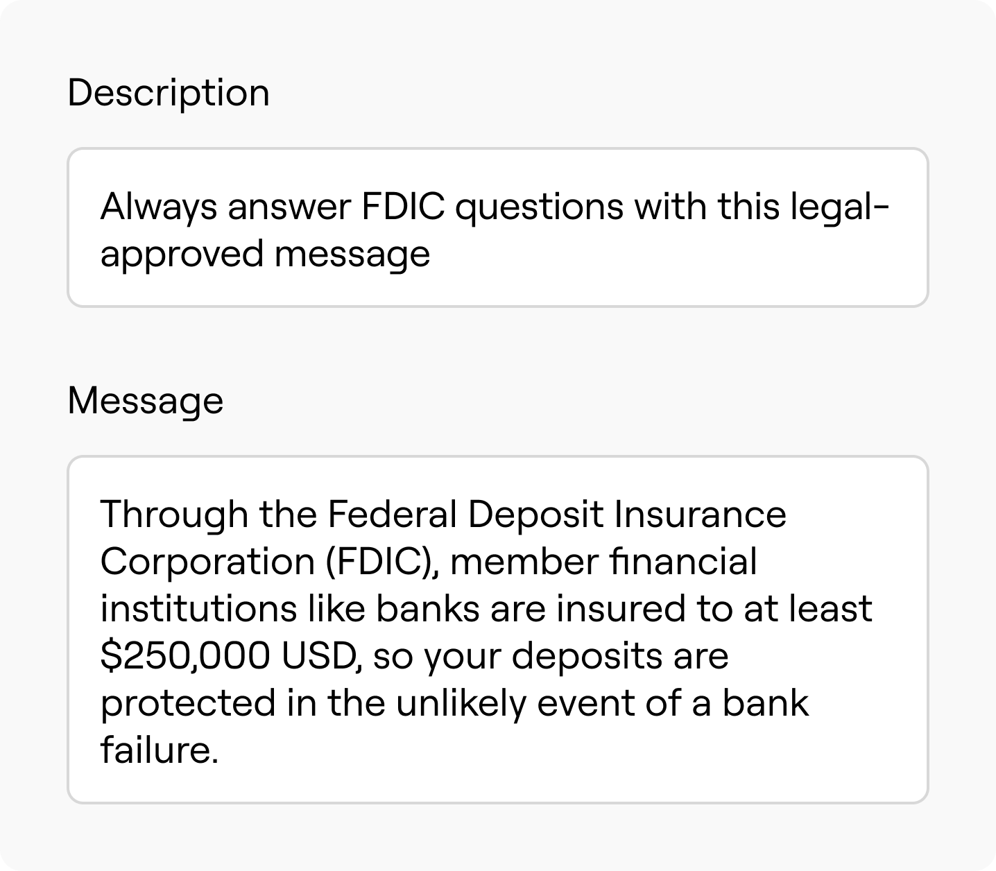 Equip your AI agent to handle complex queries accurately with detailed instructions and pre-crafted responses.