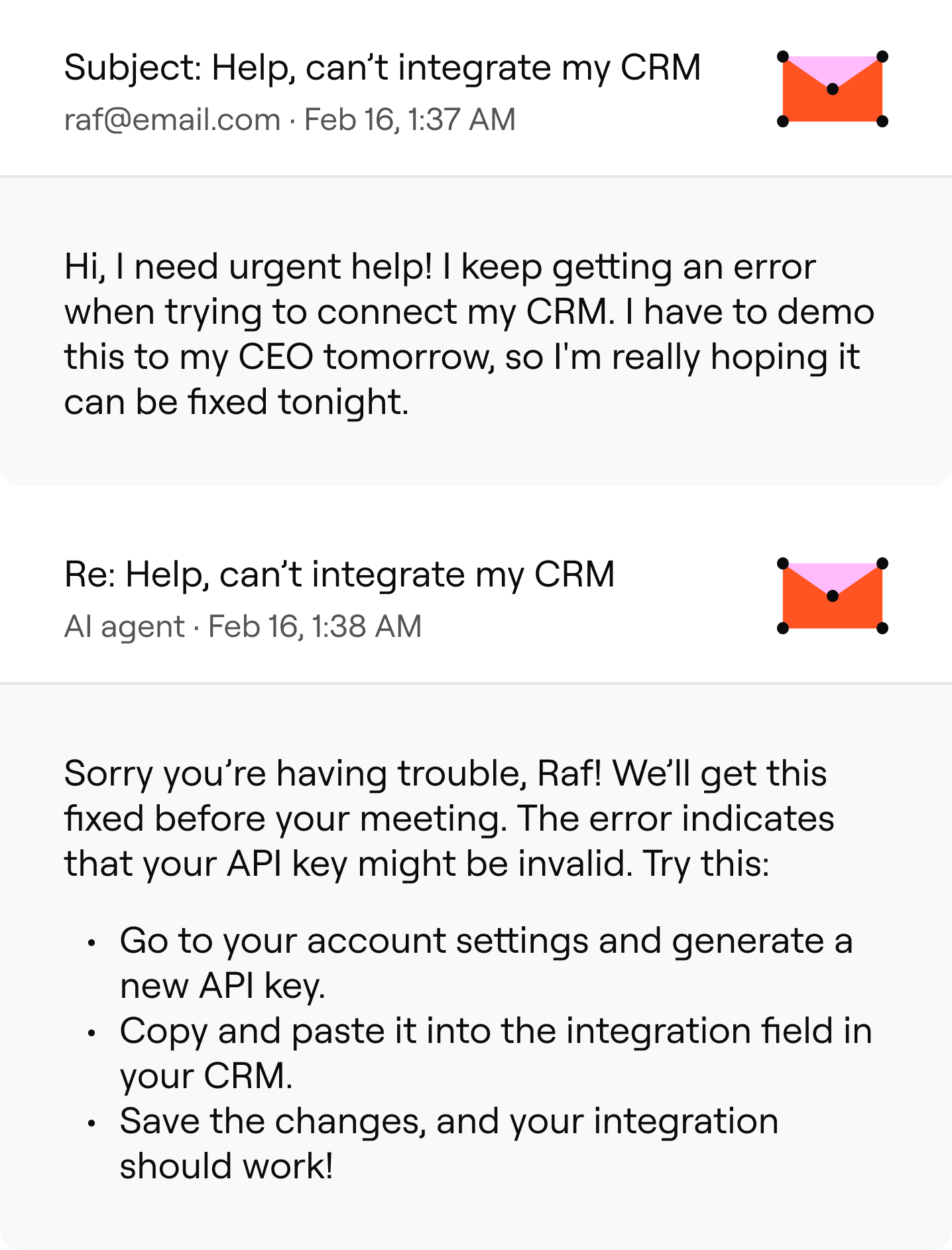 Connect with CRMs, product tools, and support systems to provide instant, personalized resolutions.